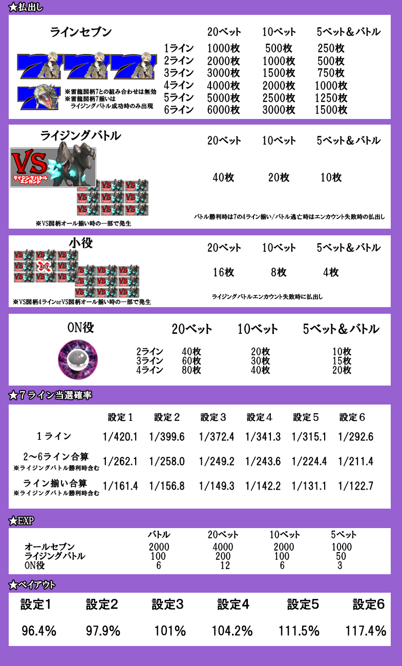 オール7などの役によりEXPが加算されます。 さらにポイントエリアでは毎ベット(Pt)分のEXPが加算されます。 -
